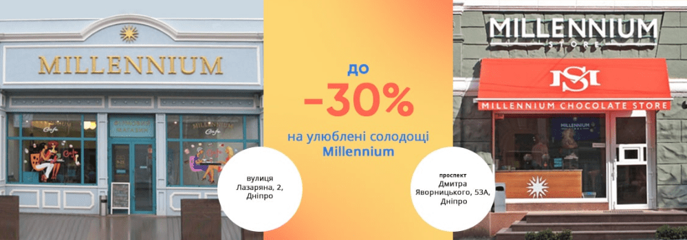Скидка до -30% на любимые сладости в фирменных магазинах Millennium